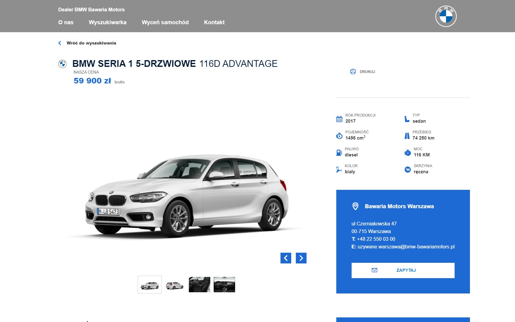 Bawaria Motors is the largest BMW dealer in Poland. Bawaria Motors operates 4 showrooms in Poland (Warsaw, Katowice, Janki, Gdańsk), which offer not only new and used vehicles, but also car body and paint services, servicing, as well as a shop with car accessories and parts.